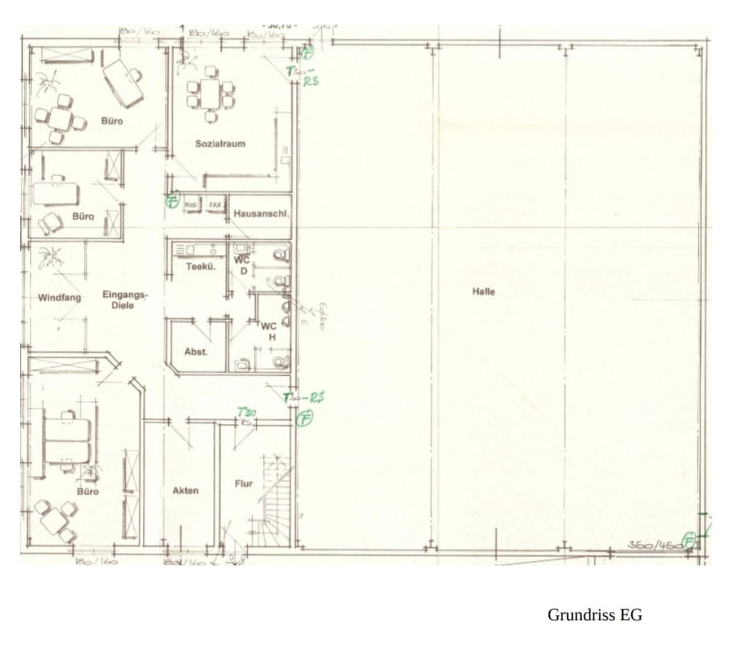 Lagerfläche, Werkstatt, Produktionsfläche mit Büro