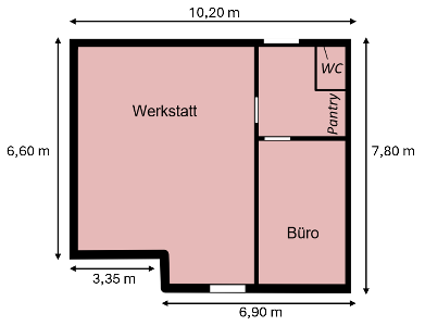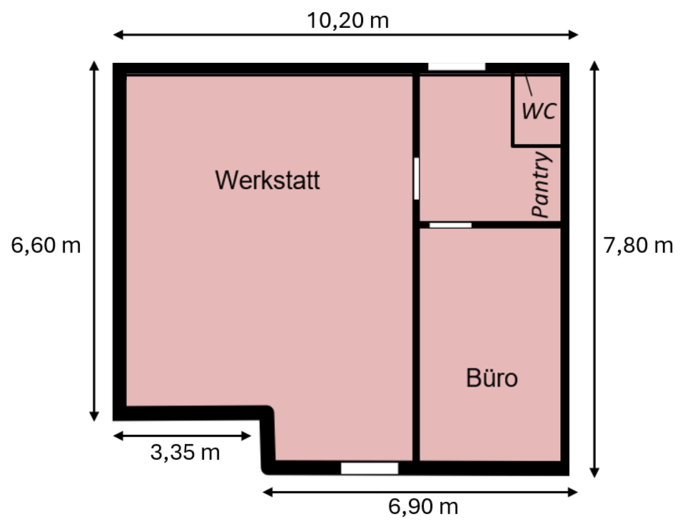 Die Einheit enthält ein 21 qm großes Büro und ist mit einer anliegenden Gewerbehalle, die ca. 65 qm groß ist, verbunden.